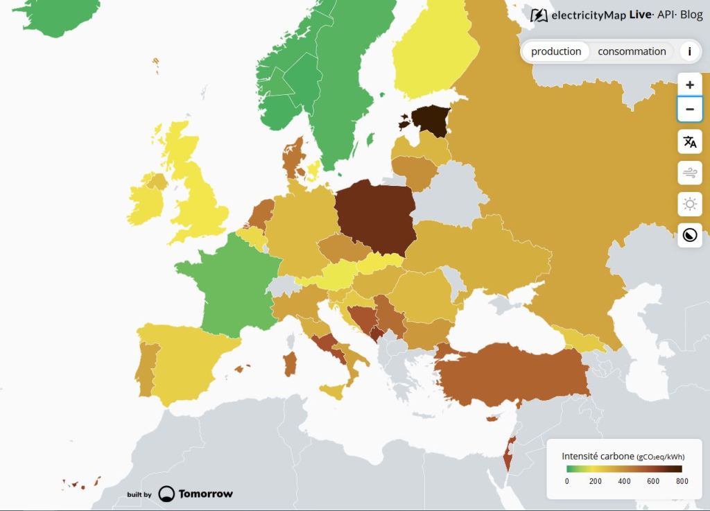 Et la France maintenant, 50 grammes de CO2 par kWh avec 27% de renouvelables.