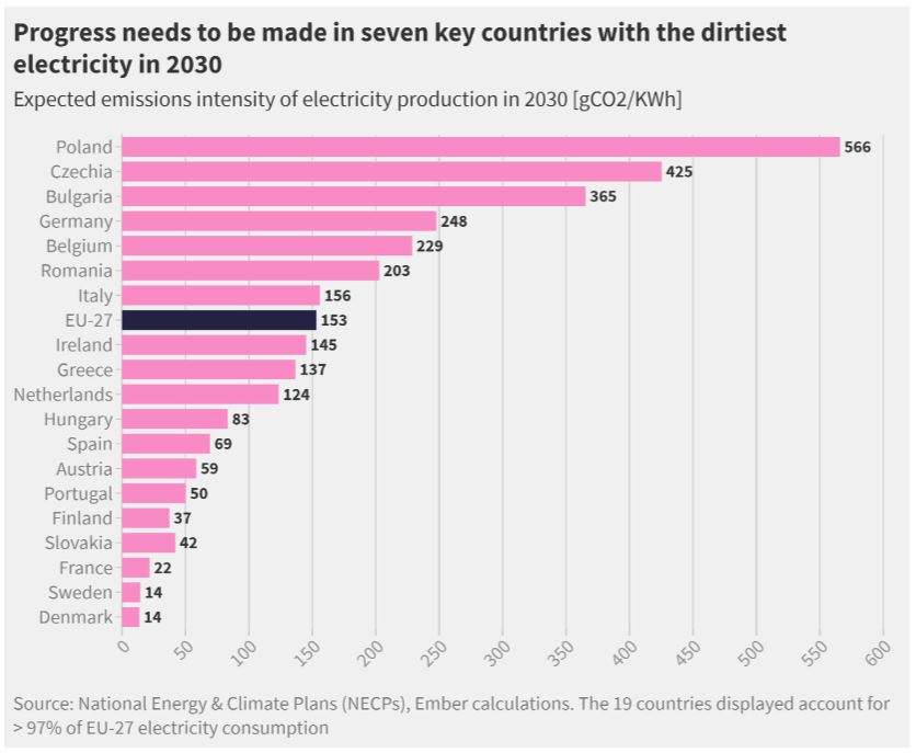 Et quand on regarde ce diagramme représentant les efforts de décarbonation dans la production d’électricité que doit faire chaque pays européen, on arrive forcément à la conclusion que le débat est biaisé.